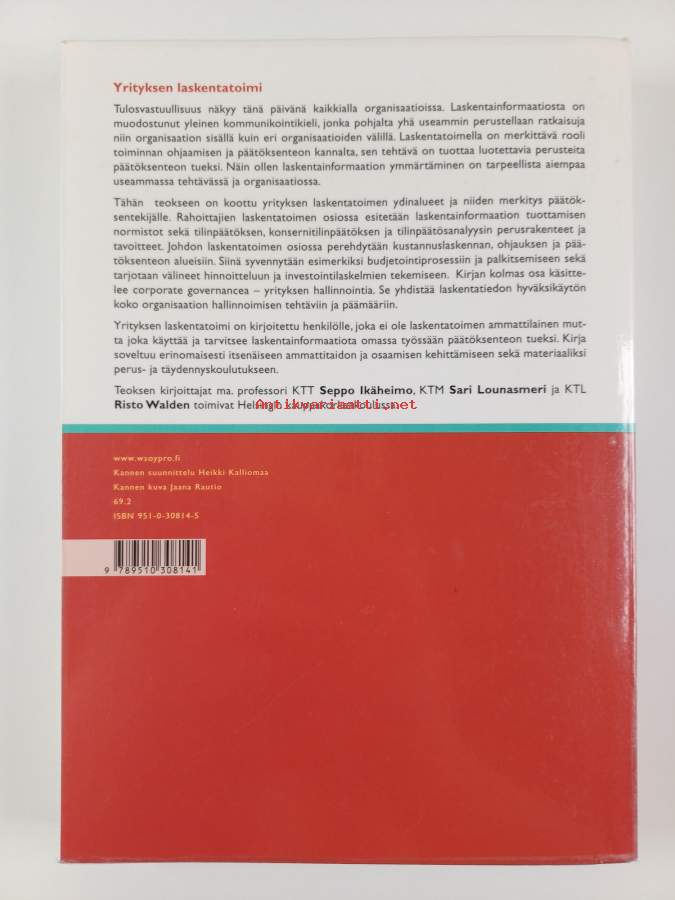 Muu(t) tekijä(t): Risto Walden, Sari LounasmeriAsiasanat: yritykset, tilinpäätös, kirjanpito, laskentatoimi, budjetointi, liikkeenjohto, kustannuslaskenta