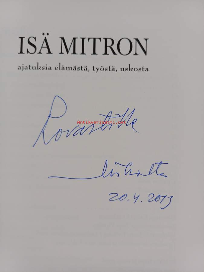 Isä Mitron ajatuksia elämästä, työstä, uskosta (signeerattu, tekijän omiste)