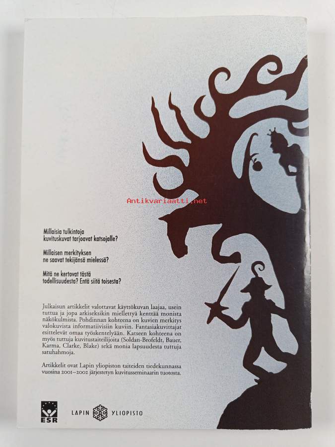 Muu(t) tekijä(t): Sisko Ylimartimo, Riitta BrusilaSarja: Lapin yliopiston taiteiden tiedekunnan julkaisuja. B 5Asiasanat: sadut, kuvittajat, kuvitus, lastenkirjallisuus, fantasiakirjallisuus, graafinen suunnittelu, kirjataide, käyttögrafiikka