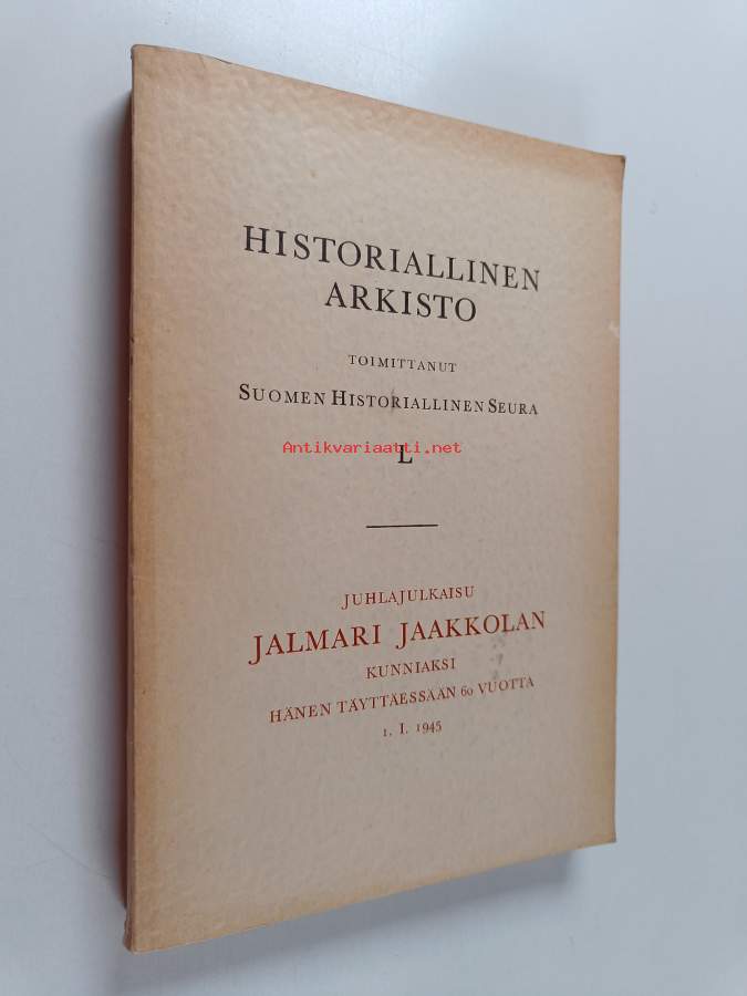 Historiallinen arkisto : Toimittanut Suomen Historiallinen Seura L : Juhlajulkaisu Jalmari Jaakkolan kunniaksi hänen täyttäessään 60 vuotta 1. I. 1945