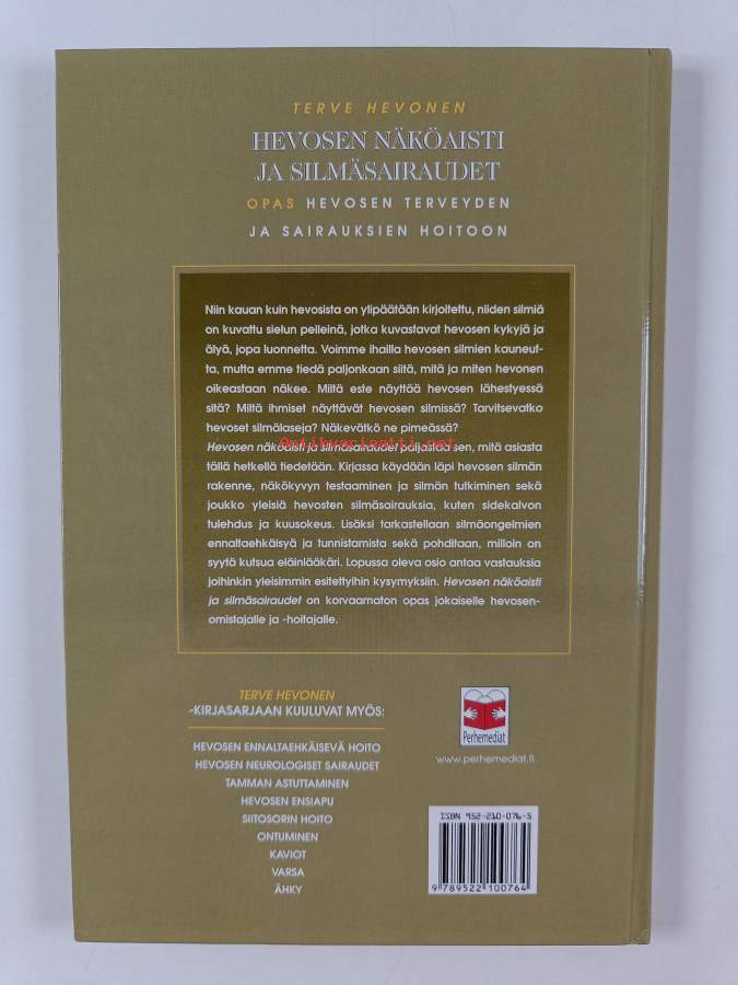 Muu(t) tekijä(t): Liisa KaskiSarja: Terve hevonenAlkuteos: The equine eyeAsiasanat: eläintaudit, hevonen, hevosenhoito, näkö, silmät