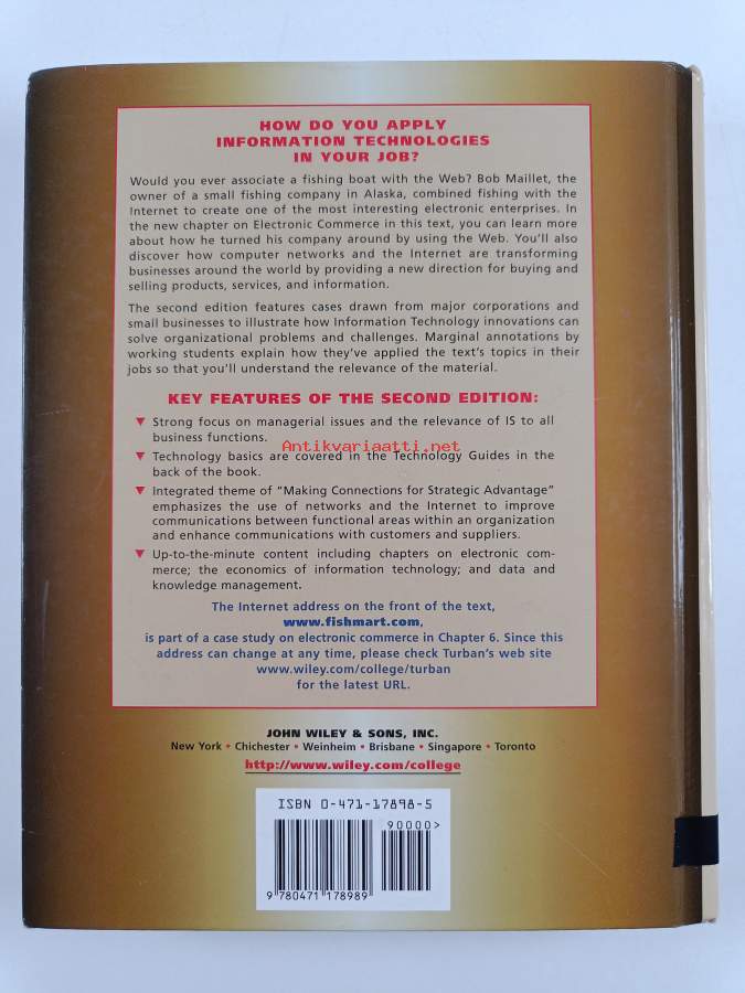 Muu(t) tekijä(t): Ralph Westfall, Ephraim McLean ym.Asiasanat: vaikutukset, verkkokauppa, yritykset, yritystoiminta, johtaminen, johtajat, päätöksenteko, tietotekniikka, liiketoiminta, laatu, liikkeenjohto, tiedonhallinta, tietoverkot, organisaatiot, yhtiöt, tietohallinto, tietoturva, tietojärjestelmät, työprosessit, tiedonhallintajärjestelmät, tietämyksenhallinta, organisationer, kvalitet, företagsverksamhet, företag, datasäkerhet, informationsteknik, informationshantering, ledarskap (verksamhetsledning), effekter, företagsledning, datanät, beslutsfattande, affärsverksamhet, näthandel, bolag, ledare (roll), datahanteringssystem, kunskapshantering, arbetsprocesser, informationsadministration, Reengineering (Management), tietokonejärjestelmät, informationssystem (tekniska system), datorsystem