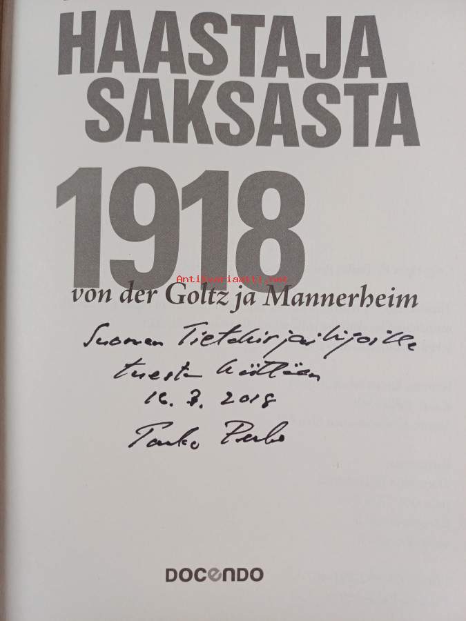 Haastaja Saksasta 1918 : von der Goltz ja Mannerheim (signeerattu, tekijän omiste)