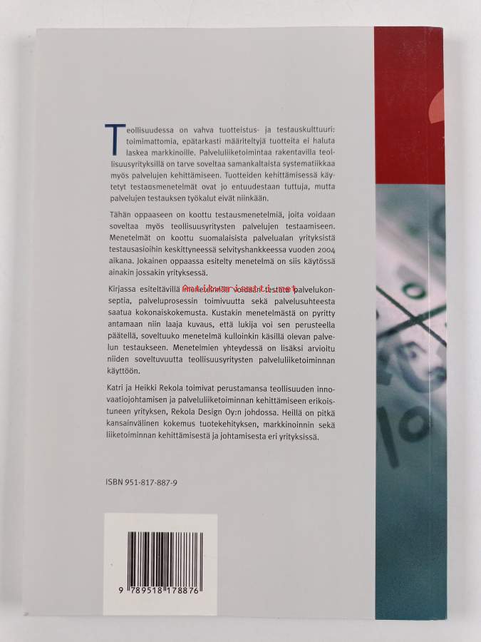Sarja: Teknologiateollisuuden julkaisuja nro 5/2005Asiasanat: palvelut, laatu, teollisuusyritykset, testaus, tuotannonsuunnittelu, tutkimusmenetelmät, menetelmät