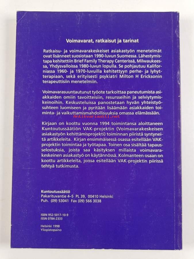 Muu(t) tekijä(t): Antti MattilaSarja: Työselosteita / Kuntoutussäätiö 16; Working Papers / Rehabilitation Foundation 16Asiasanat: mielenterveys, ihminen, kirjoittaminen, asiakkaat, työelämä, ongelmanratkaisu, elämänhallinta, resurssit, psykoterapia, kuntoutus, vuorovaikutus, yhteistyö, stressi, masennus, uupumus, luova kirjoittaminen, kiusaaminen, nuoruus, lyhytterapia, psykiatrinen kuntoutus, keskustelu, tuloksellisuus, tulokset, mielenterveystyö, asiakastyö, ratkaisukeskeisyys, kirjallisuusterapia, asiakkuus, narratologia, mielenterveyskuntoutus, perhekeskeisyys, psychotherapy, psychotherapy, brief, rehabilitation, Interviews, crisis intervention, ratkaisukeskeinen terapia, nondirective therapy