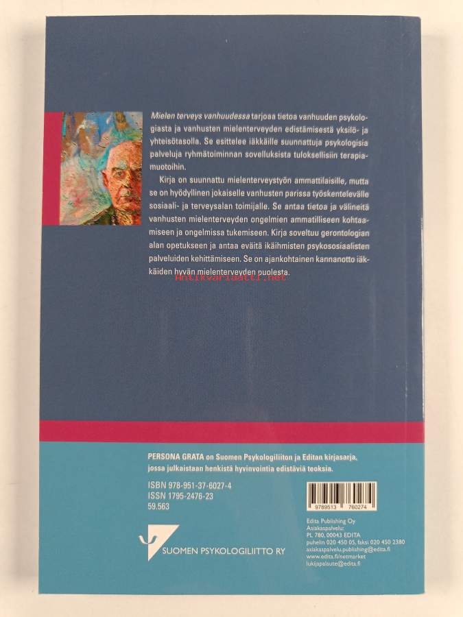 Muu(t) tekijä(t): Sirkkaliisa Heimonen, Hannu Pajunen ym.Sarja: Persona grata 23; Persona grataAsiasanat: mielenterveys, vanhuus, psykodynamiikka, psykoterapia, kuntoutus, ryhmätyö, terveyden edistäminen, ikääntyminen, kognitiivinen terapia, muistisairaudet, ikääntyneet, keskusteluryhmät, mielenterveysongelmat, gerontologia, psykogerontologia, psykodynaaminen psykoterapia, interpersoonallinen psykoterapia
