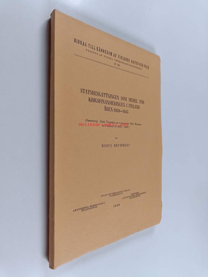 Sarja: Bidrag till kännedom af Finlands natur och folk / utgivna af Finska Vetenskaps-societeten H. 99Asiasanat: historia, vinterkriget, andra världskriget, beskattning, fortsättningskriget, ekonomisk historia, statsekonomi, krigsekonomi