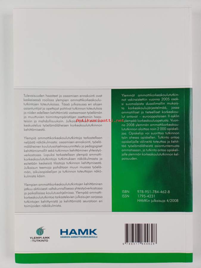 Muu(t) tekijä(t): Jarmo Levonen, Hanna MaijalaSarja: HAMKin julkaisuja 4/2008Asiasanat: kansainvälistyminen, tutkinnot, työelämä, kehittäminen, laatu, suunnittelu, pedagogiikka, aluekehitys, osaaminen, ammattikorkeakoulut, koulutustarve, opinnäytteet, korkeakoulututkinnot, asiantuntijuus, ammatillinen koulutus, verkostoituminen, opetussuunnitelmat, laatujärjestelmät, verkko-oppiminen, tuotantotalous, laatutyö, ennakointi, jatkokoulutus, koulutusohjelmat, jatkotutkinnot, työelämäyhteydet, työelämävalmiudet, laadunvarmistus, työelämälähtöisyys, vertaisarviointi, vertaisarviointi (arviointimenetelmät), ylemmät ammattikorkeakoulututkinnot