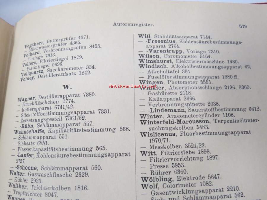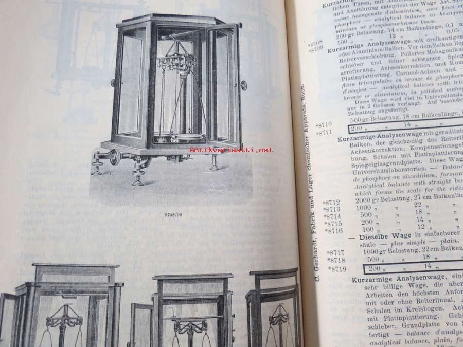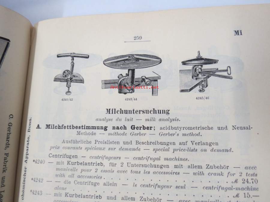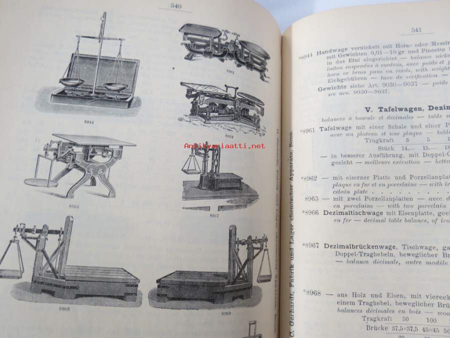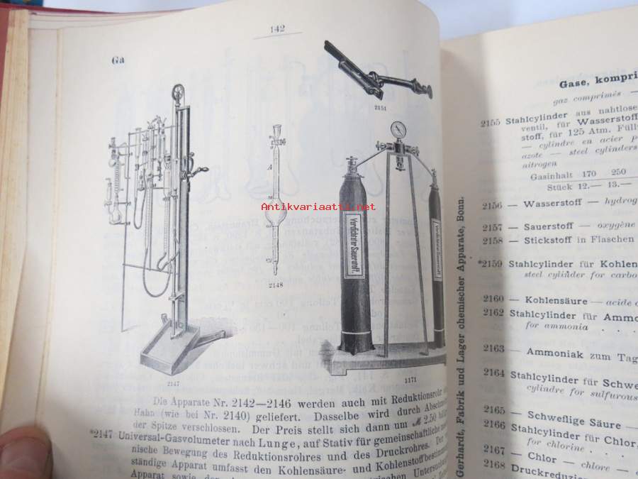 C. Gerhardt Preisverzeichnis über Chemische Apparate und Gerätschaften -kemianalan kojeita ja laitteita, kuvasto, saksankielinen