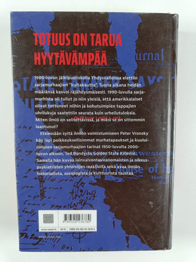 Alkuteos: American Serial Killers: The Epidemic Years 1950-2000Asiasanat: historia, henkilöhistoria, tuomiot, murha, yhteiskunnallinen muutos, murhaajat, esitutkinta, profilointi, sarjamurhaajat, miehet, kannibalismi, psykopatia, persoonallisuuden piirteet, raiskaus, rikolliset, seksuaalirikokset, Yhdysvallat, oikeuspsykiatria