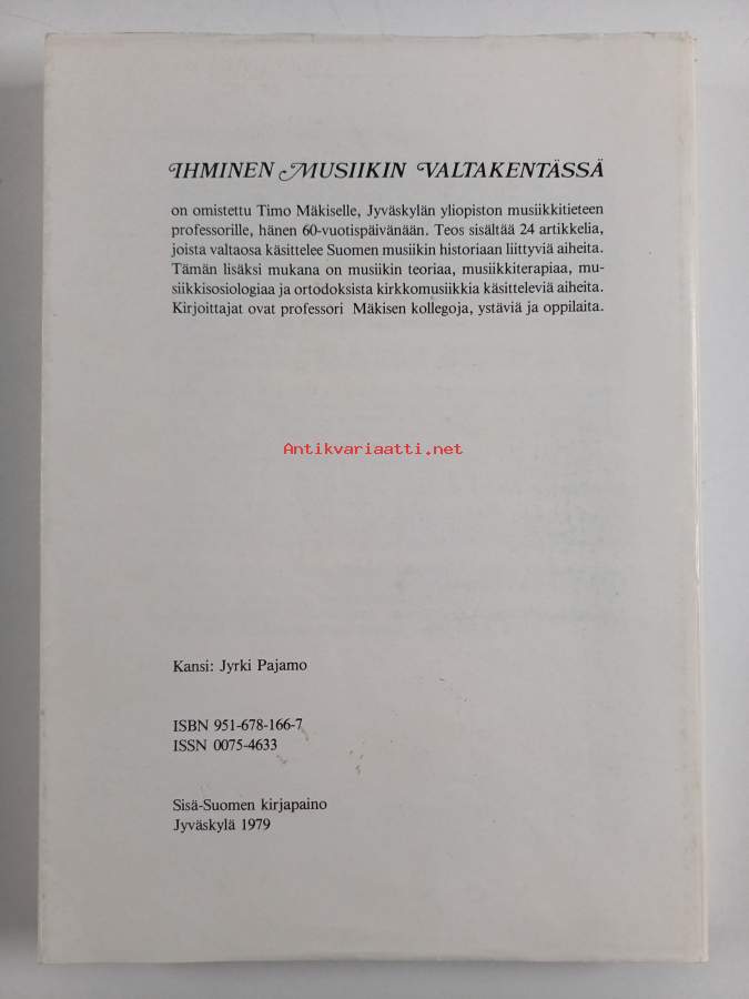 Ihminen musiikin valtakentässä : juhlakirja professori Timo Mäkiselle 6.6.1979 (eripainos)