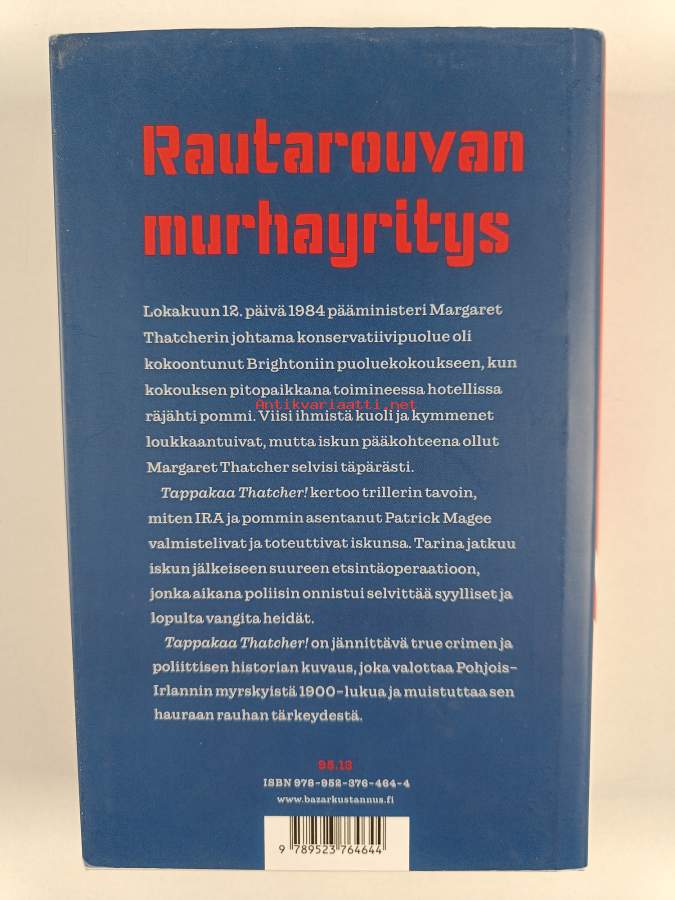 Alkuteos: Killing ThatcherAsiasanat: poliittinen historia, esitutkinta, rikoksentekijät, pääministerit, konfliktit, poliittinen väkivalta, Iso-Britannia, poliittinen murha, puoluekokoukset, attentaatit, pommit, murhayritykset, 1980-luku, Pohjois-Irlanti, Brighton