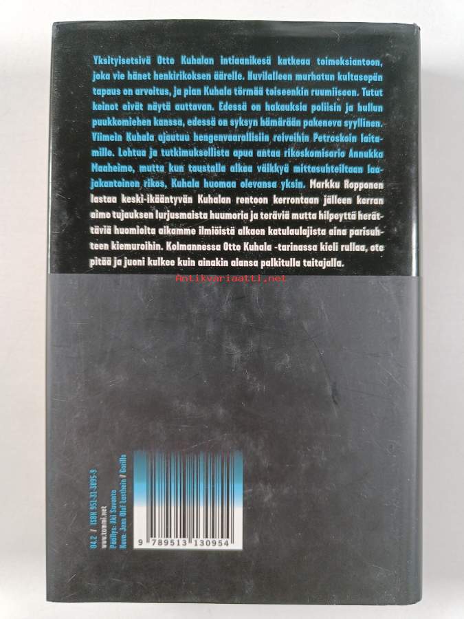 Hyvä. Tarkempi kuntoluokka: K3+ ; Hieman kolhua yläkulmissa, selkämyksessä hieman vinoutta. Kansipaperin kunto: pienoista kulumaa reunoilla, muuten erinomainen