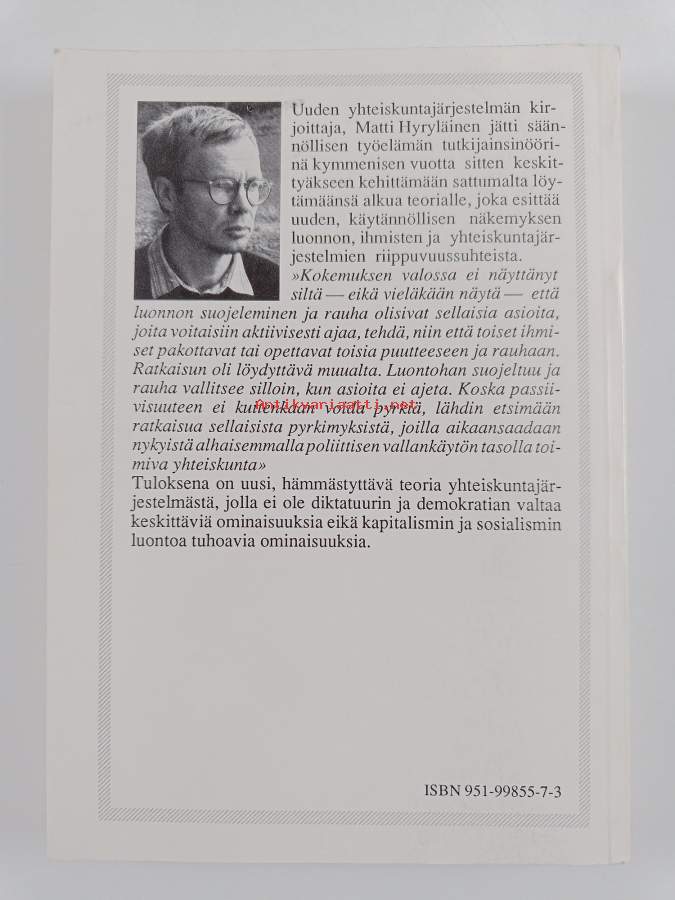 Uusi yhteiskuntajärjestelmä : teoria vähän luontoa kuluttavasta yhteiskunnasta (signeerattu)