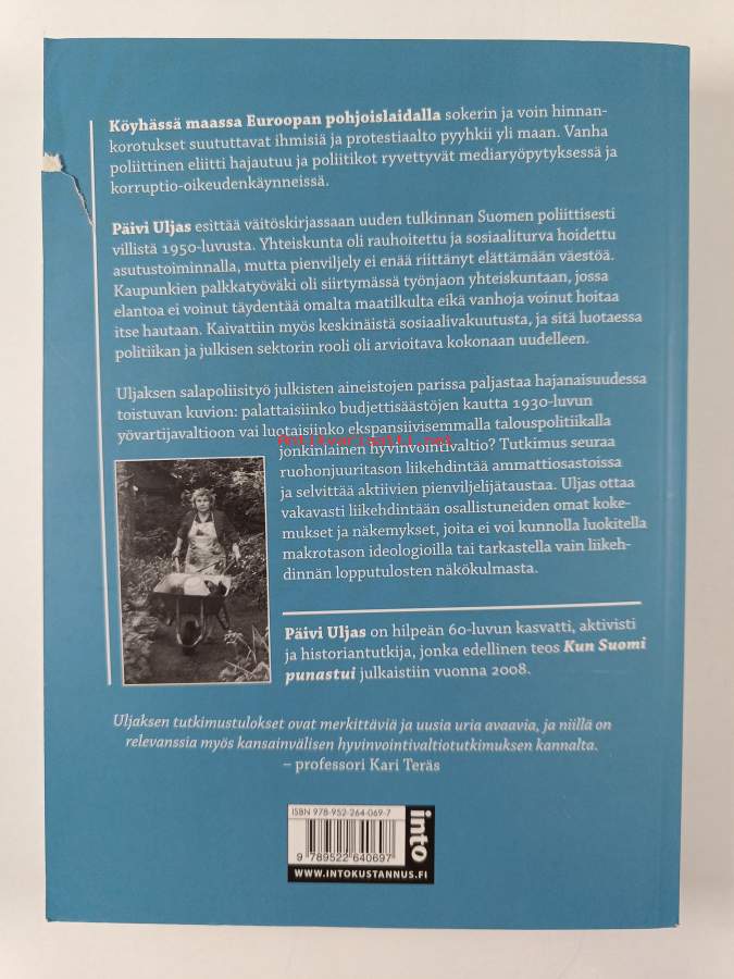 Koko nimi: Hyvinvointivaltion läpimurto - Pienviljelyhegemonian rapautumisen, kansalaisliikehdinnän ja poliittisen murroksen keskinäiset suhteet suomalaisessa yhteiskunnassa 1950-luvun loppuvuosinaAsiasanat: sosiaalihistoria, hyvinvointivaltio