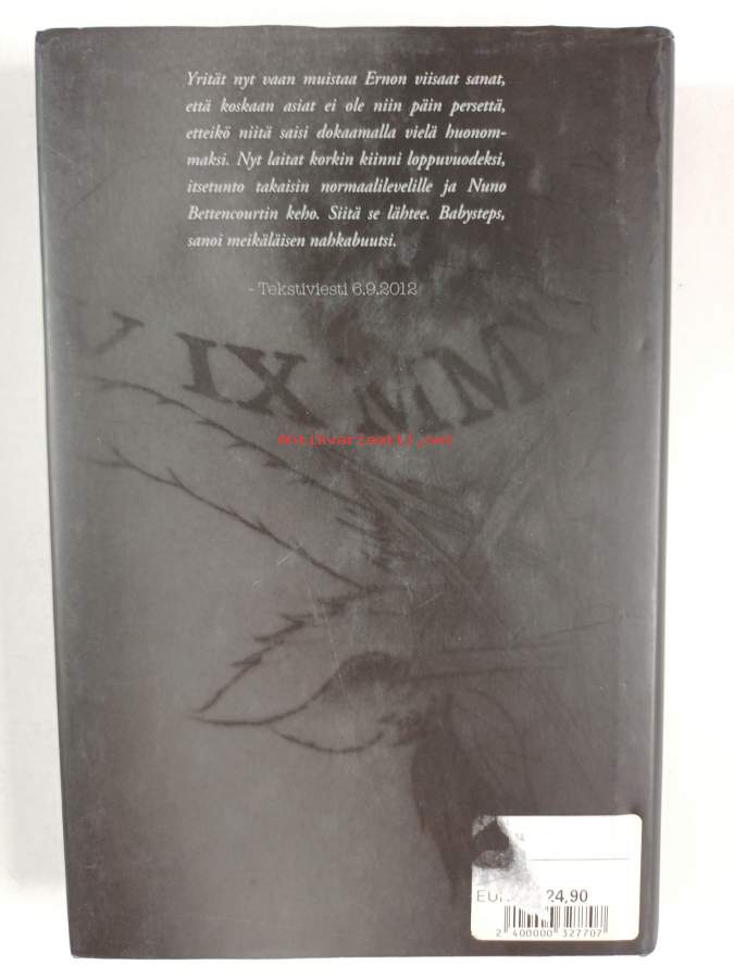 Hyvä. Tarkempi kuntoluokka: K3+ ; Hieman kolhua selkämyksen päissä, takana hintalapun jäämää. Kansipaperin kunto: pienoista kulumaa reunoilla, muuten erinomainen