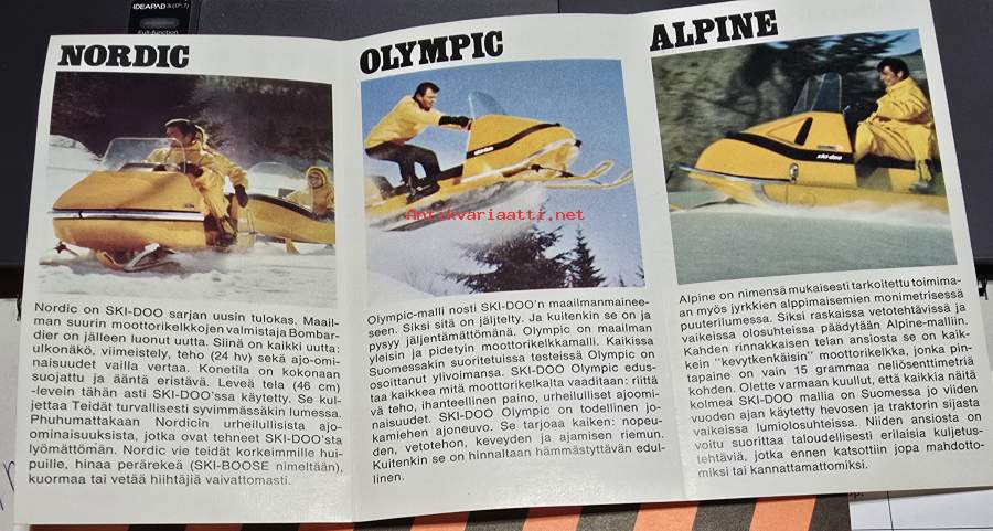 Ski-doo Olympic, Nordic 1970 moottorikelkka -myyntiesite