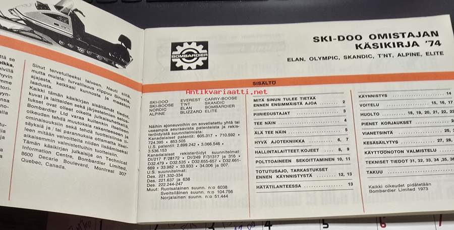 SKI-DOO VM 1974 OMISTAJAN KÄSIKIRJA