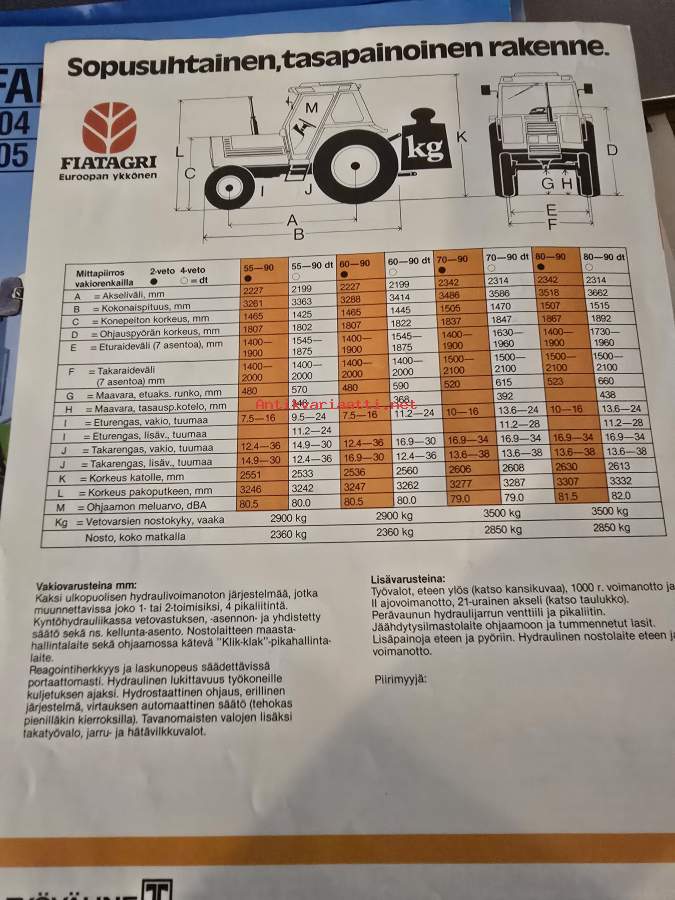 FIAT 55-90, 60-90, 70-90 ja 80-90 myyntiesite