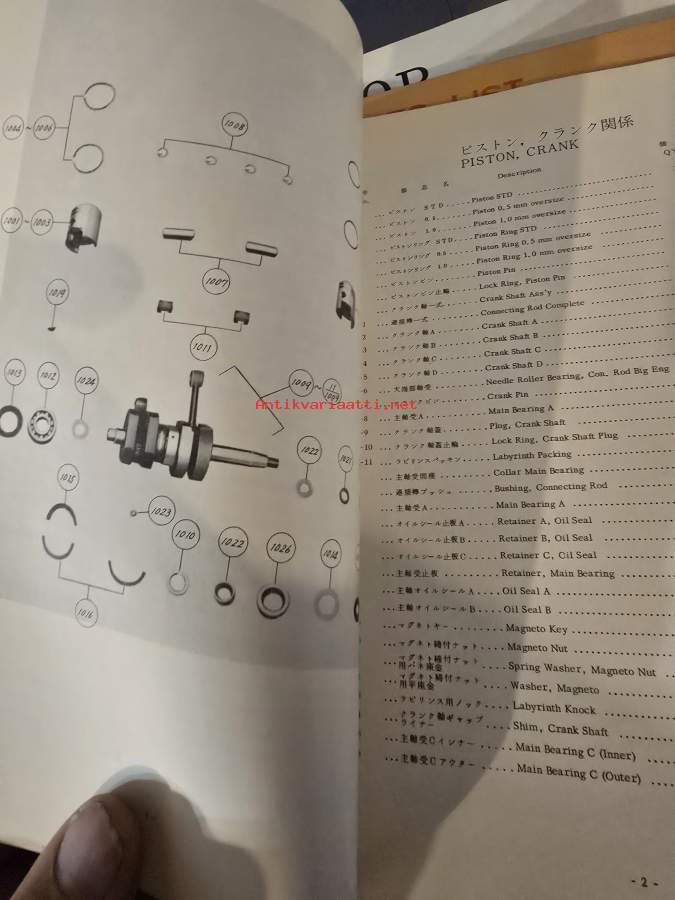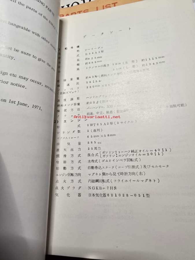 TOHATSU type B 38 A 2 PARTS LIST 1971