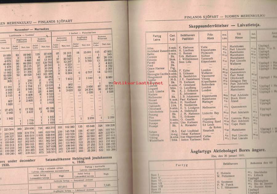 Finlands Sjöfart 1931 Januari - Tammikuu Suomen Merenkulku