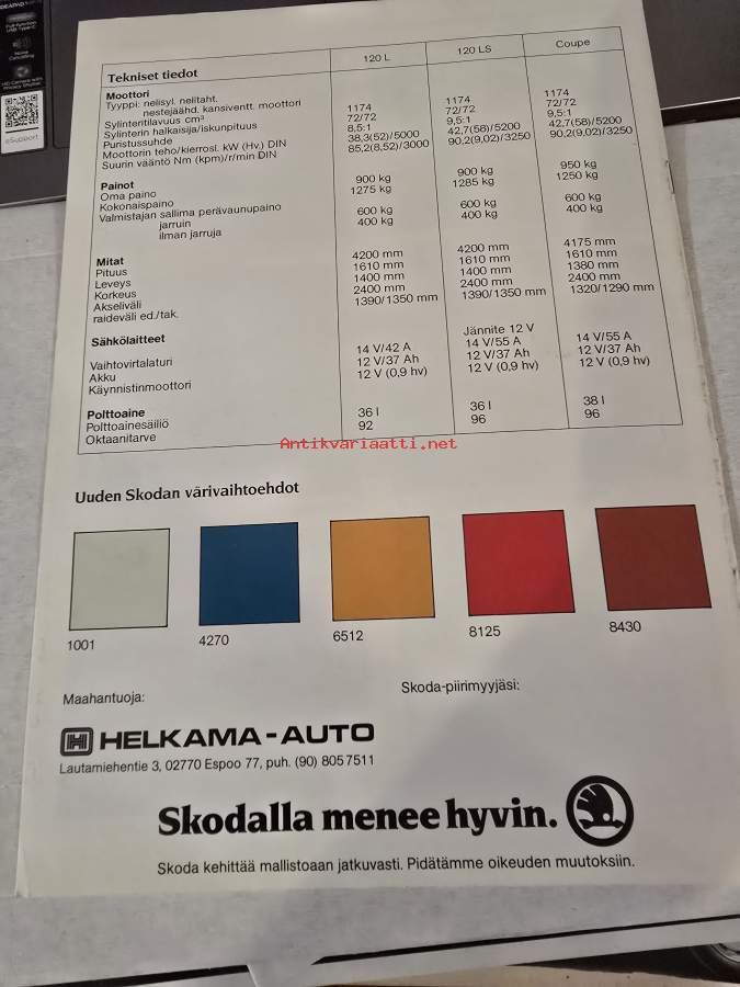 SKODA 120 / L JA 120 / LS ja COUPE myyntiesite. suomen kielinen.