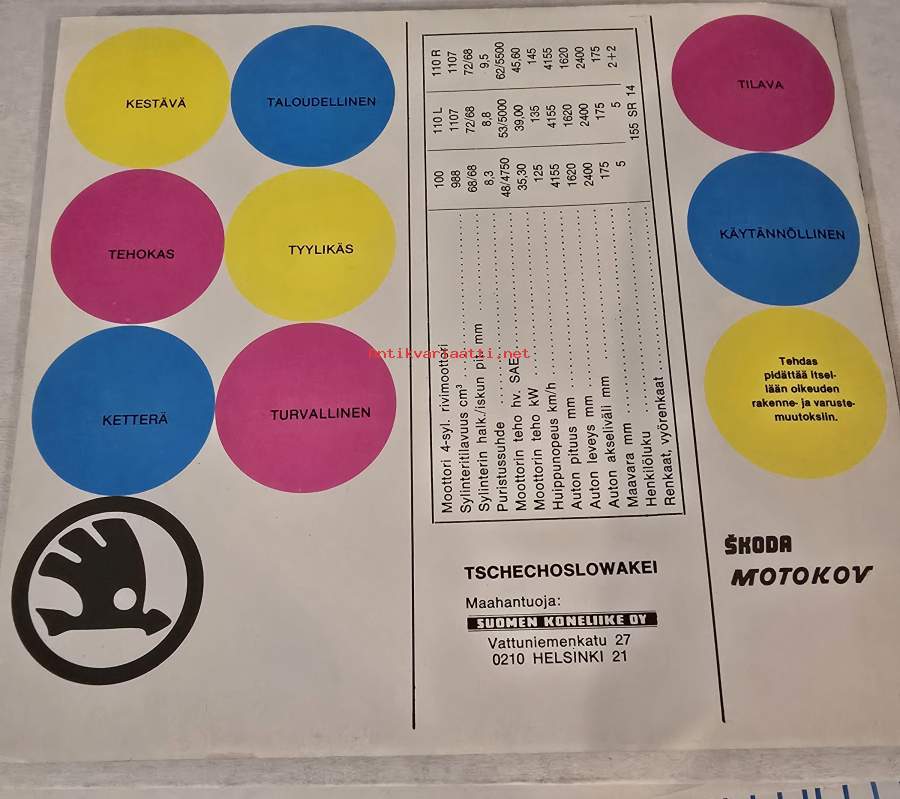SKODA 100, 100 L, 110 L, 110 LS JA 110 R myyntiesite. suomen kielinen.