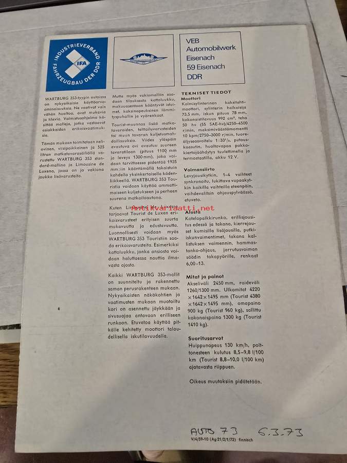 WARTBURG 353 1973 MYYNTIESITE.