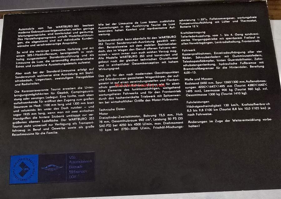 Wartburg 353 Limousine Tourist -omistajan käsikirja