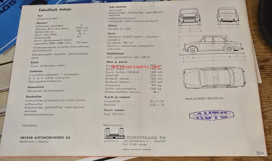 Neckar 2D Jagst 770, vm. 1964, IN-465, omistaja Laukon Auto, Tampere -rekisteriote / registerutdrag