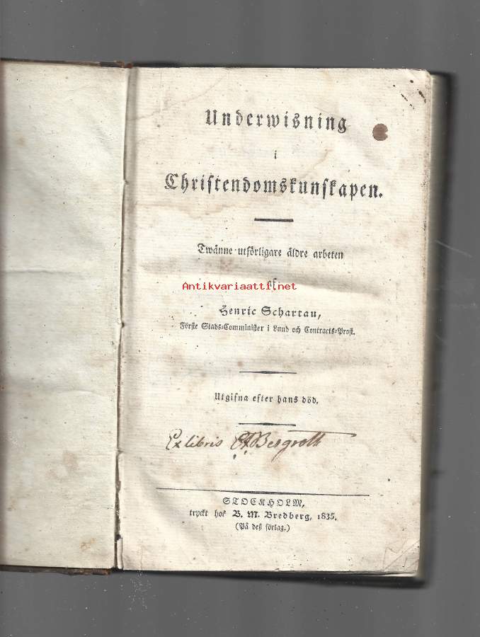 Underwisning i Christendomskunskapen/ Henric ScharrauPublisher: B. M. Bredberg Stockholm, 1835