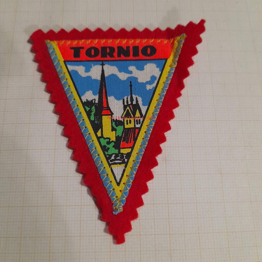 Tornio / matkailumerkki / merkki / badge pohjaväri punainen kangasmerkki