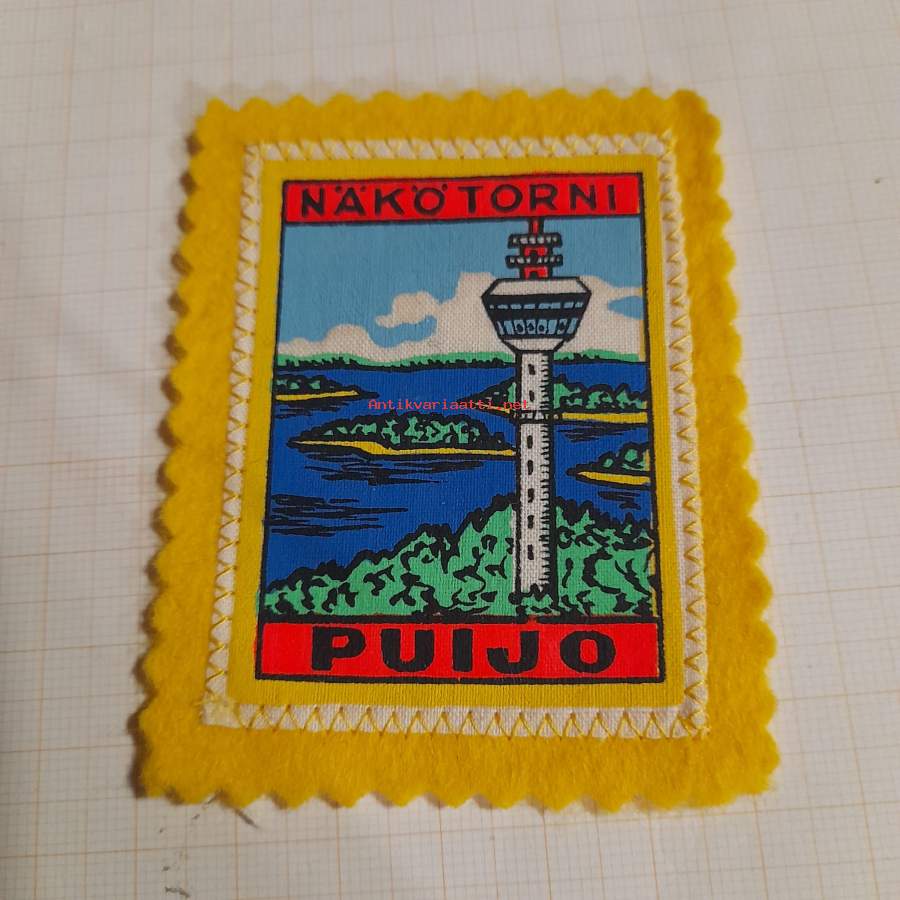 Puijo näkötorni -kangasmerkki / matkailumerkki / hihamerkki / badge pohjaväri keltainen