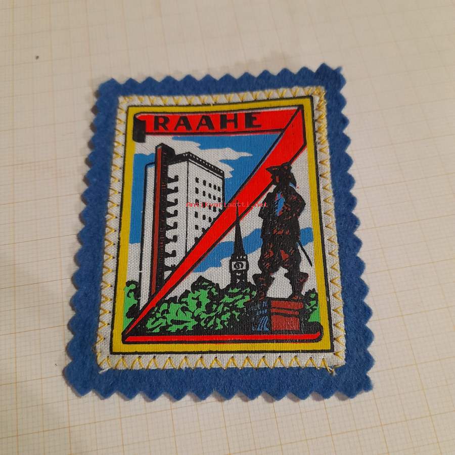 Raahe / matkailumerkki / merkki / badge pohjaväri sininen