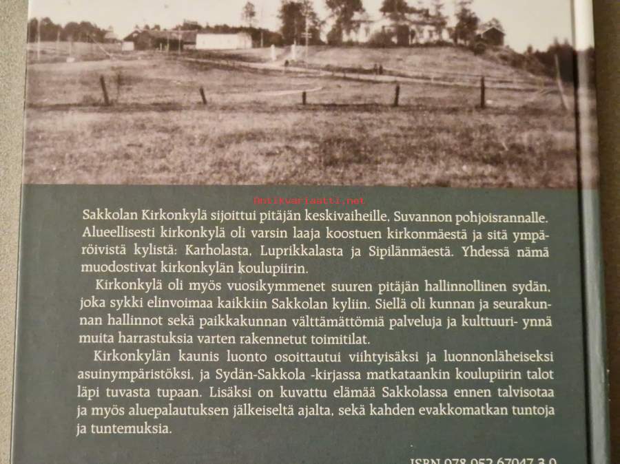 1 leima, muuten uudenveroinen. Ulkoasu 544 sivua : kuvitettu, karttoja ; 26 cm Julkaisija Lempäälä : Sakkola-säätiö, 2009Luokitus udkf 908 Sakkola Sakkolan historiaaAiheet paikallishistoriat (historiikit) kotiseutukuvaukset luovutetut alueet karjalaiset asutus asukkaat sota-aika talvisota jatkosota historia Karjala Kirkonkylä (Sakkola) Luprikkala (Sakkola) Karhola (Sakkola) Sipilänmäki (Sakkola) [toimituskunta: Matti Naskali ... ja muita]ISBN 978-952-67047-3-9 sidottu