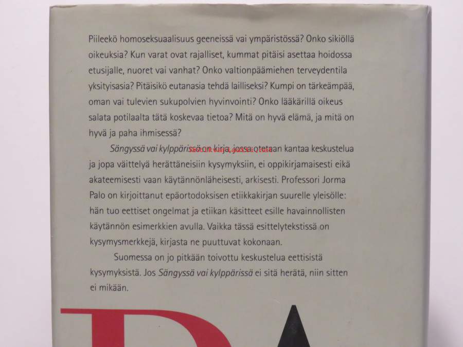 Sängyssä vai kylppärissä (Arjen etiikkaa), 1996. 2.p. Etiikkakirja suurelle yleisölle. Keskustelua herättäviä pohdintoja homoudesta,eutanasiasta, vanhusten hoidosta