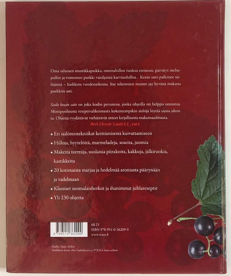 Eri säilömistekniikat keittämisestä kuivattamiseen. Hilloja, soseita, marmeladeja, hyytelöitä ja juomia.Paljon reseptejä.Kuvitettu.Dimensiot: 26x21cm