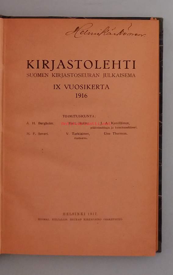 Kirjastolehti - vuosikerta 1916. IX vuosikerta. (Keräilyharvinaisuudet, varhaisvuosikerrat )