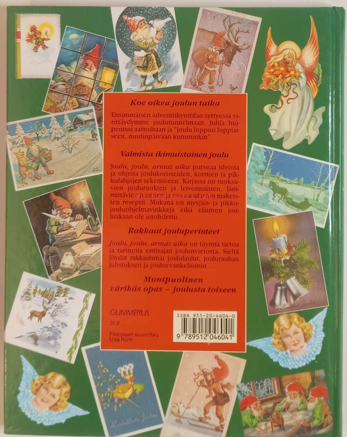 Kirja pursuaa ideoita ja ohjeita joulukoristeiden, korttien ja pikkulahjojen tekemiseen. Jouluruokien reseptejä ym.Kuvitettu.Dimensiot: 28x22cm