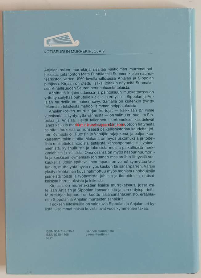 Anjalankosken murrekirja - Kotiseudun murrekirjoja 9. (Lingvistiikka, kielitiede, entisajan elämänmuoto, paikallishistoria, kansankieli, uskomukset, naapurihuumori)