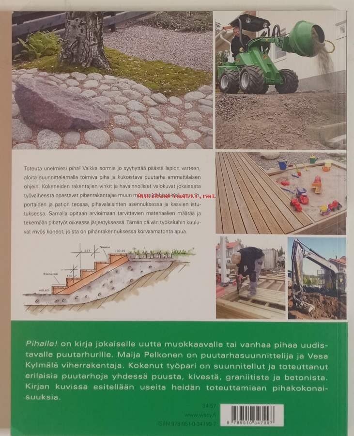 Kivetykset, muurit, portaat, perustukset, puurakenteet, valaisimet, istutukset. Toteuta unelmiesi piha.Kuvitettu.Dimensiot: 25x20cm