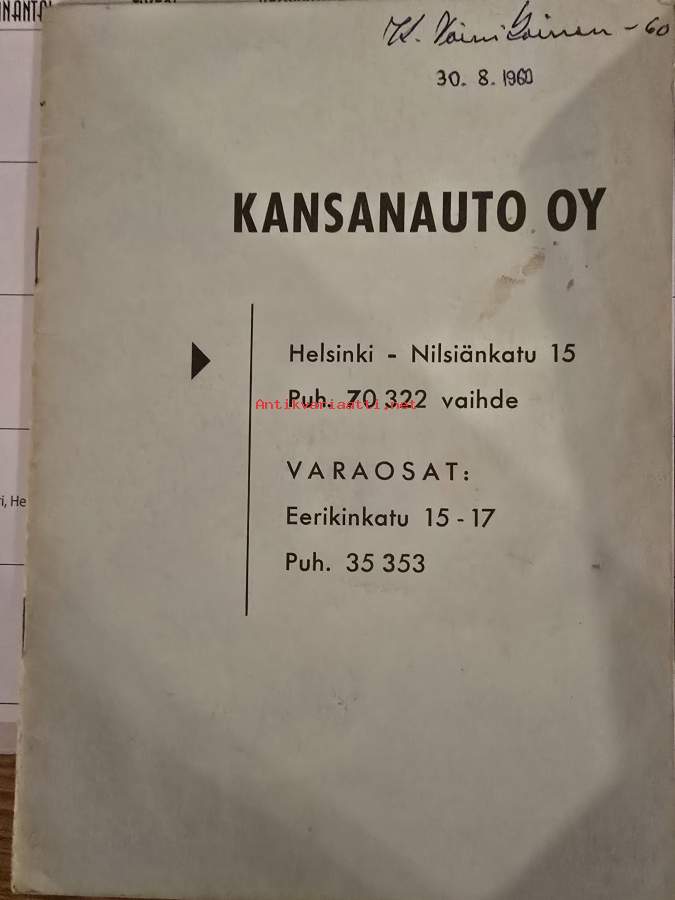 Panhard Dyna 4 D Sedan 2570, vm. 1956, IM-899, omistaja autonkuljettaja Anton Pynnönen, Tampere -rekisteriote / registerutdrag