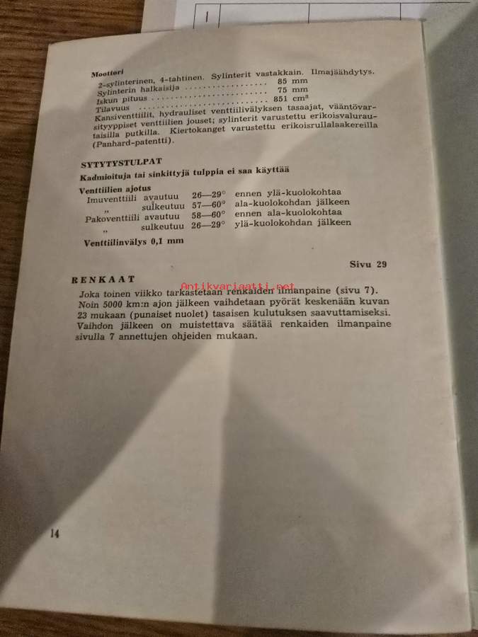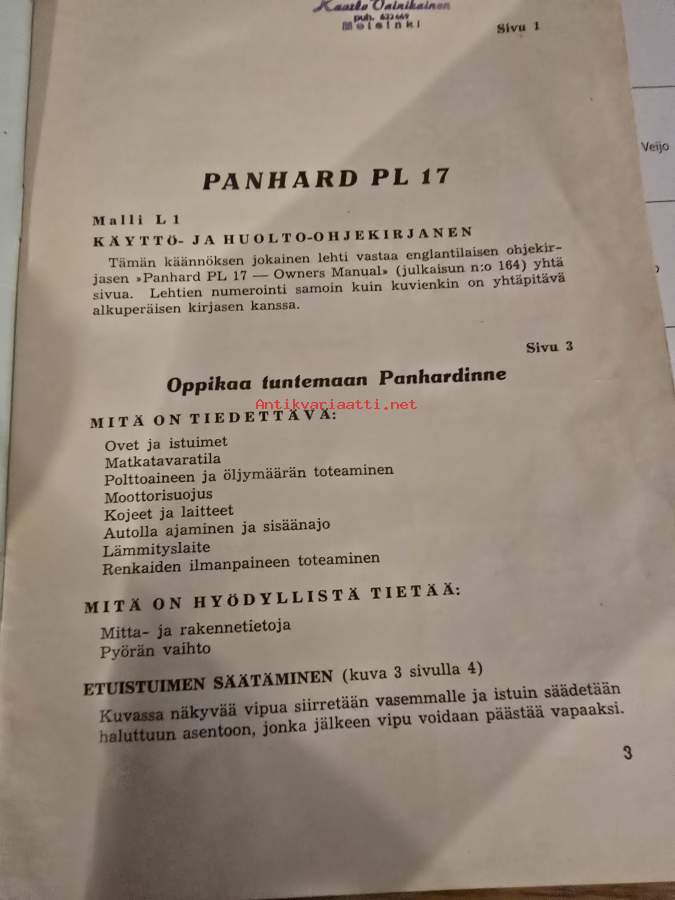 PANHARD PL 17 1960 Käyttö- ja huolto-ohjekirjanen.