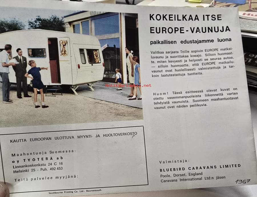 EUROPE 1967 Matkailuvaunu myyntiesite