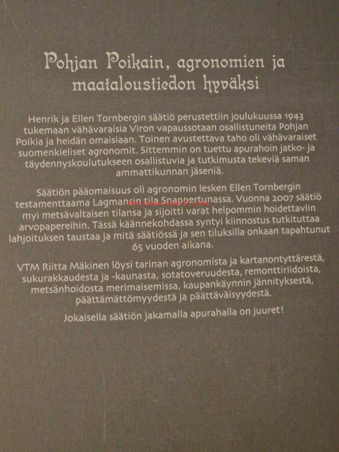 Henrik ja Ellen Tornbergin säätiö 1943-2008 : Pohjan Poikain, agronomien ja maataloustiedon hyväksi [sukuhistoriaa: Henrik Tornberg + Ellen Tornberg o.s. Pohjala ]
