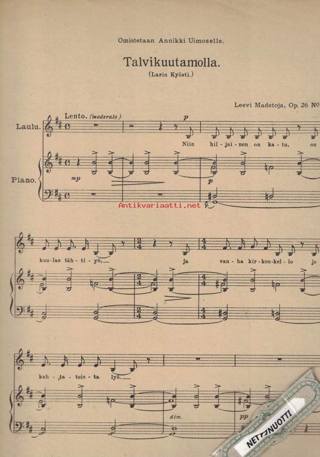 Laulu pianon säestyksellä-Postitus taitettuna (3,80€), kirje, tai postipaketti, taittamatta (6,50€)