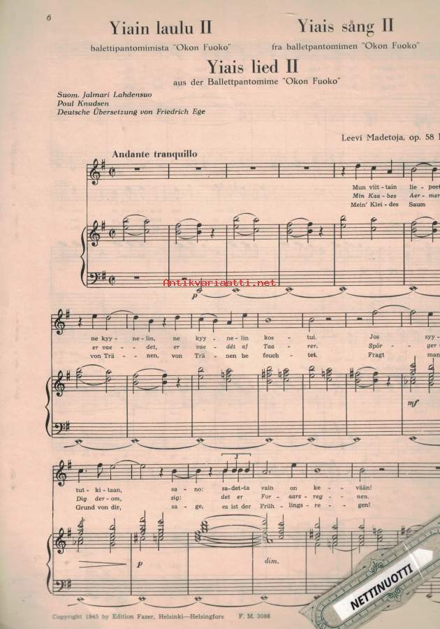 Yiain laulu I-II = Yiais Song I-II = Yiais Lied I-II, Op. 58 No 1-2