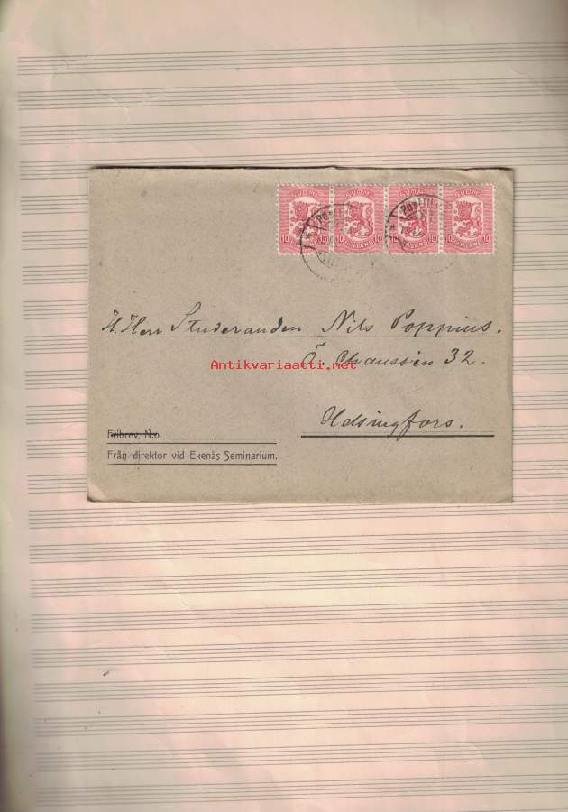 Från direktör vid Ekenäs Seminarium.Tuloleima: Helsinki 15.IX.19. 11
