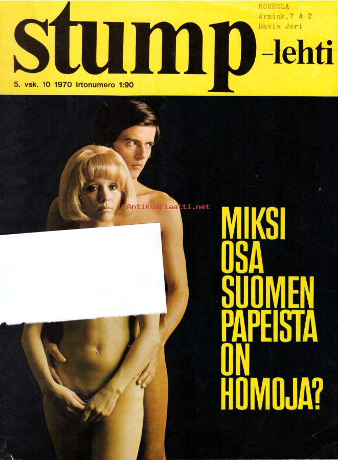 Mm. Tarja Markus ja Olavi Tupamäki. Keskiaukeamalla Marraskuun Stump-tyttö!