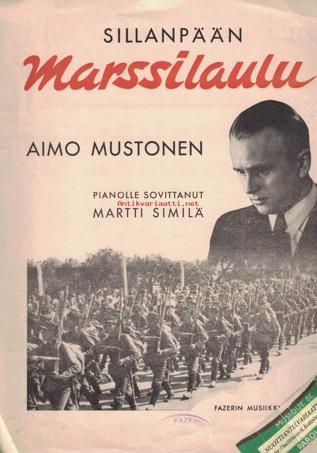 Pianolle sovittanut Martti Similä. Ruotsinkieliset sanat eri paperilla.